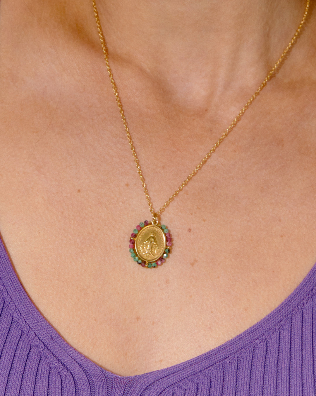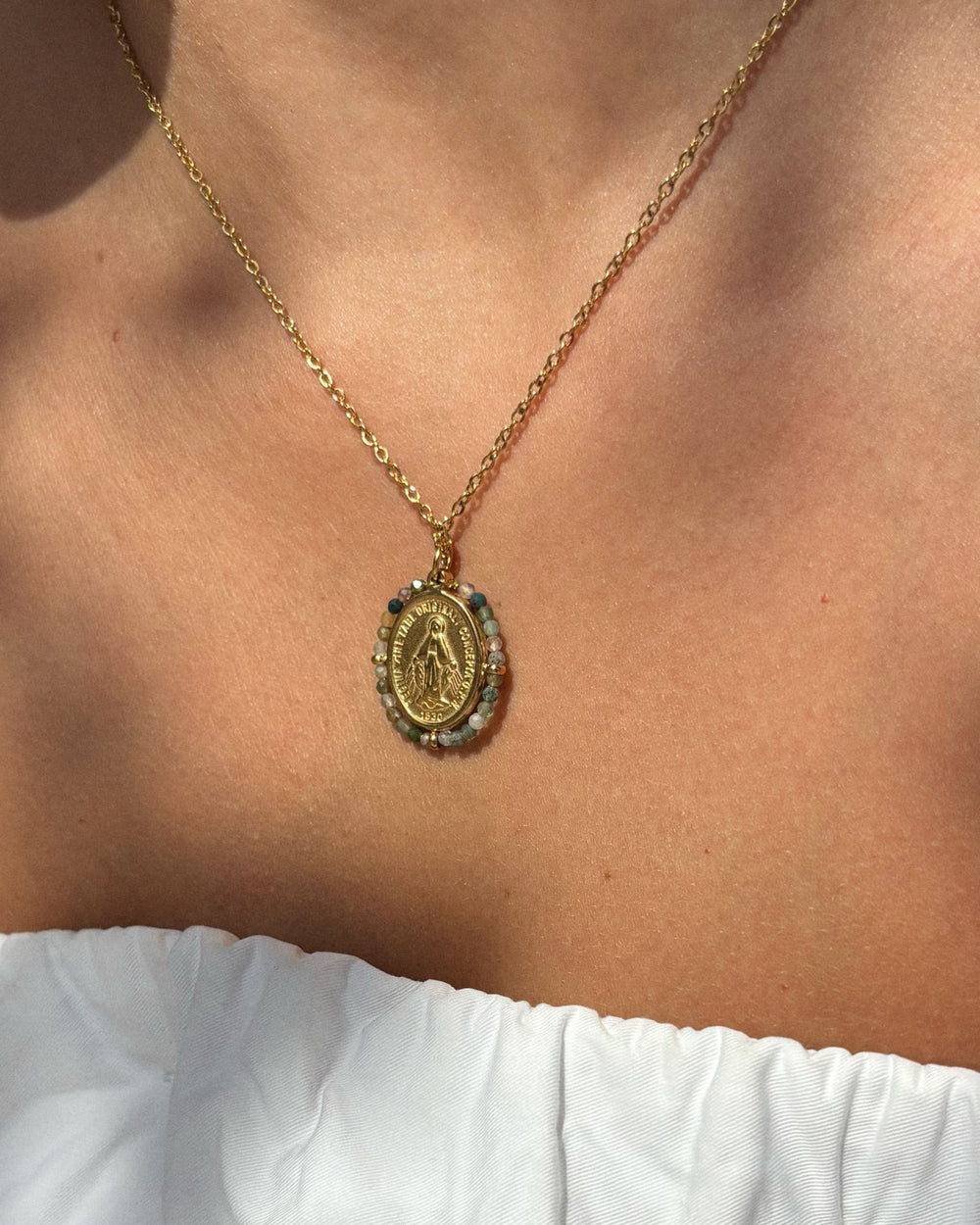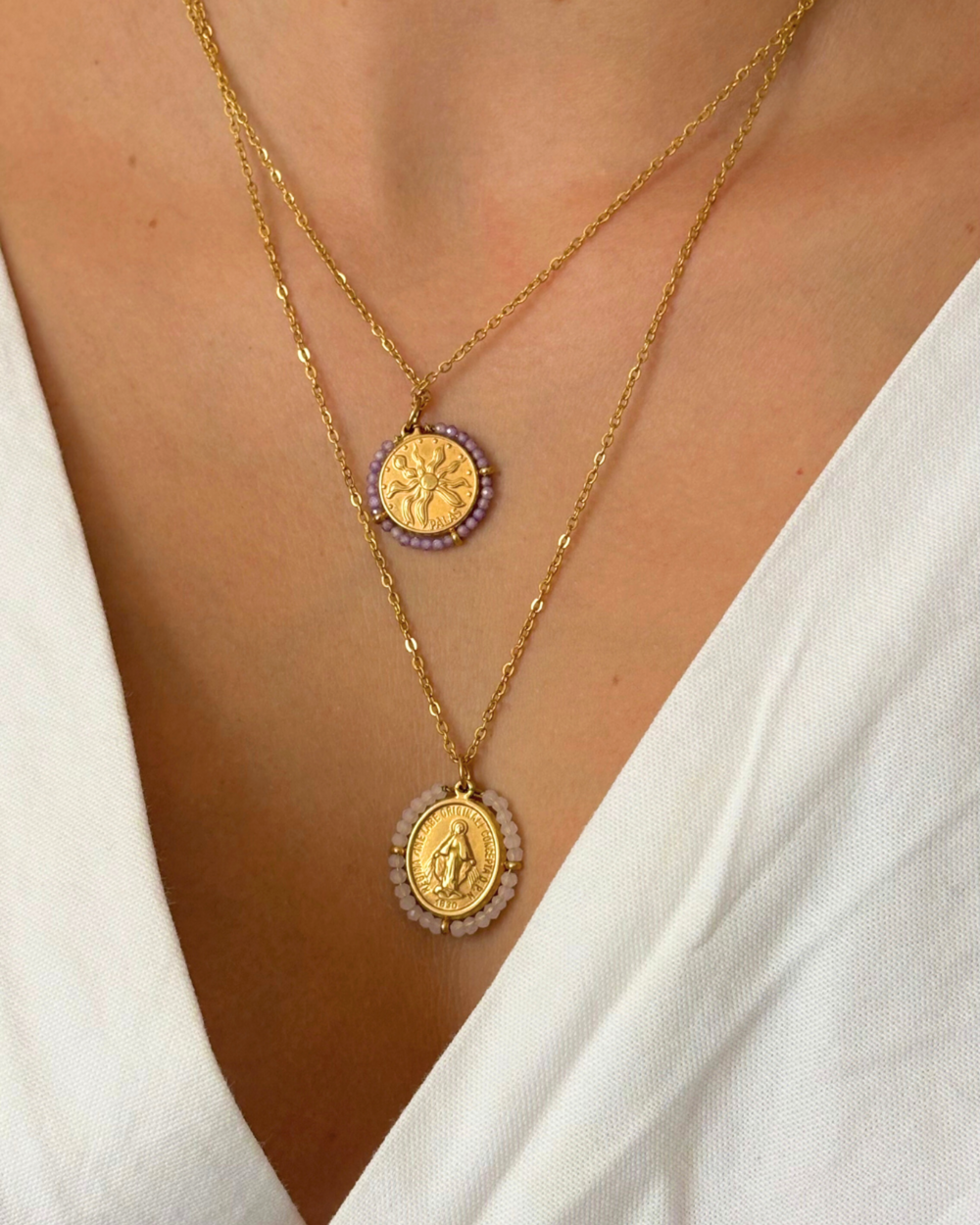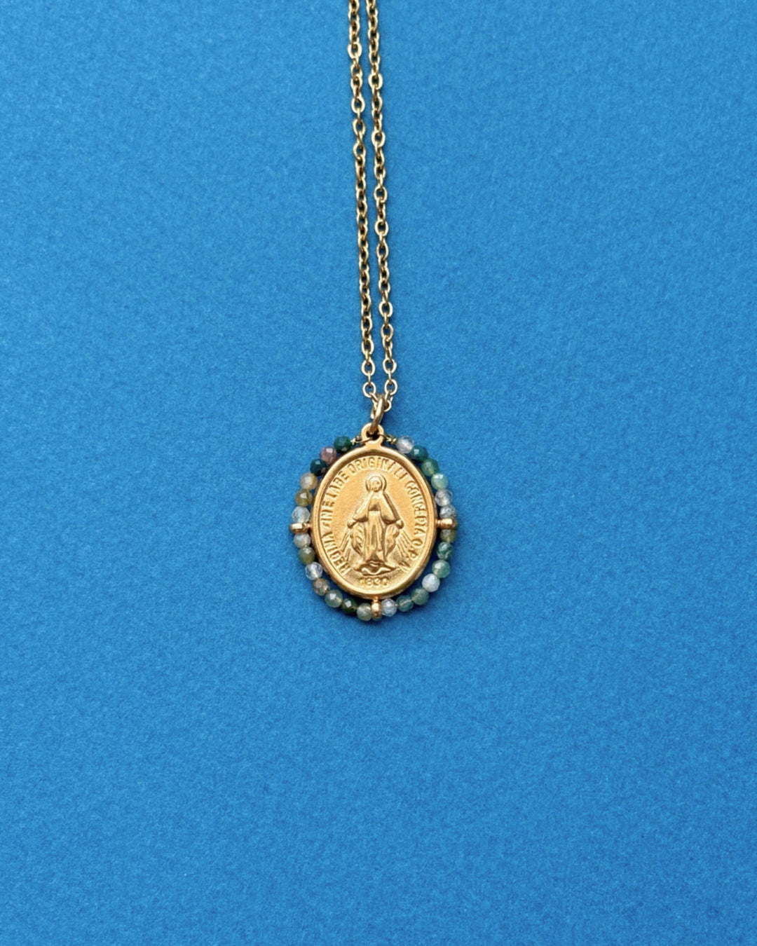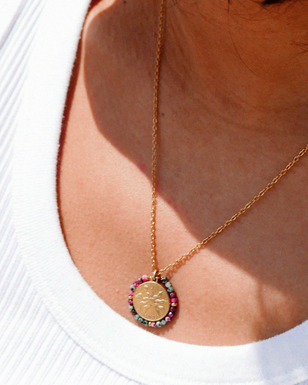 Vos nouveaux bijoux préférés ! Découvrez nos médailles en acier inoxydable doré ornées de pierres semi-précieuses. Vous ne voudrez plus les quitter.