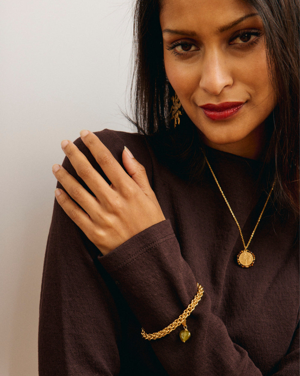 L'acier inoxydable doré que nous utilisons nécessite très peu d'entretien. Il ne ternit pas au contact de la peau ou de l'eau (même salée) et ne provoque aucune réaction cutanée. C'est pour toutes ces qualités que nous l'avons choisi pour tous nos bijoux.
