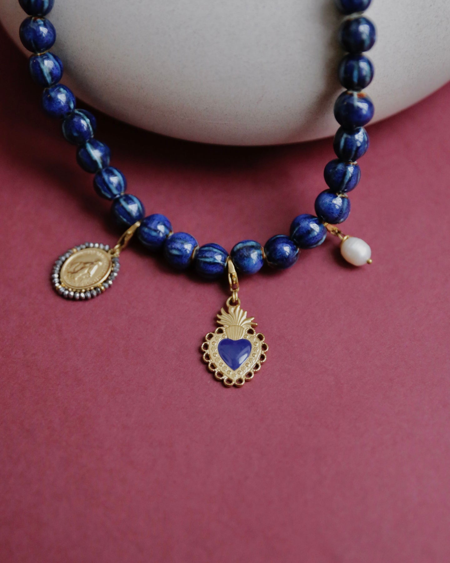 When the Miraculous Medal meets an ex-voto symbol. A choker and charms set full of charm.